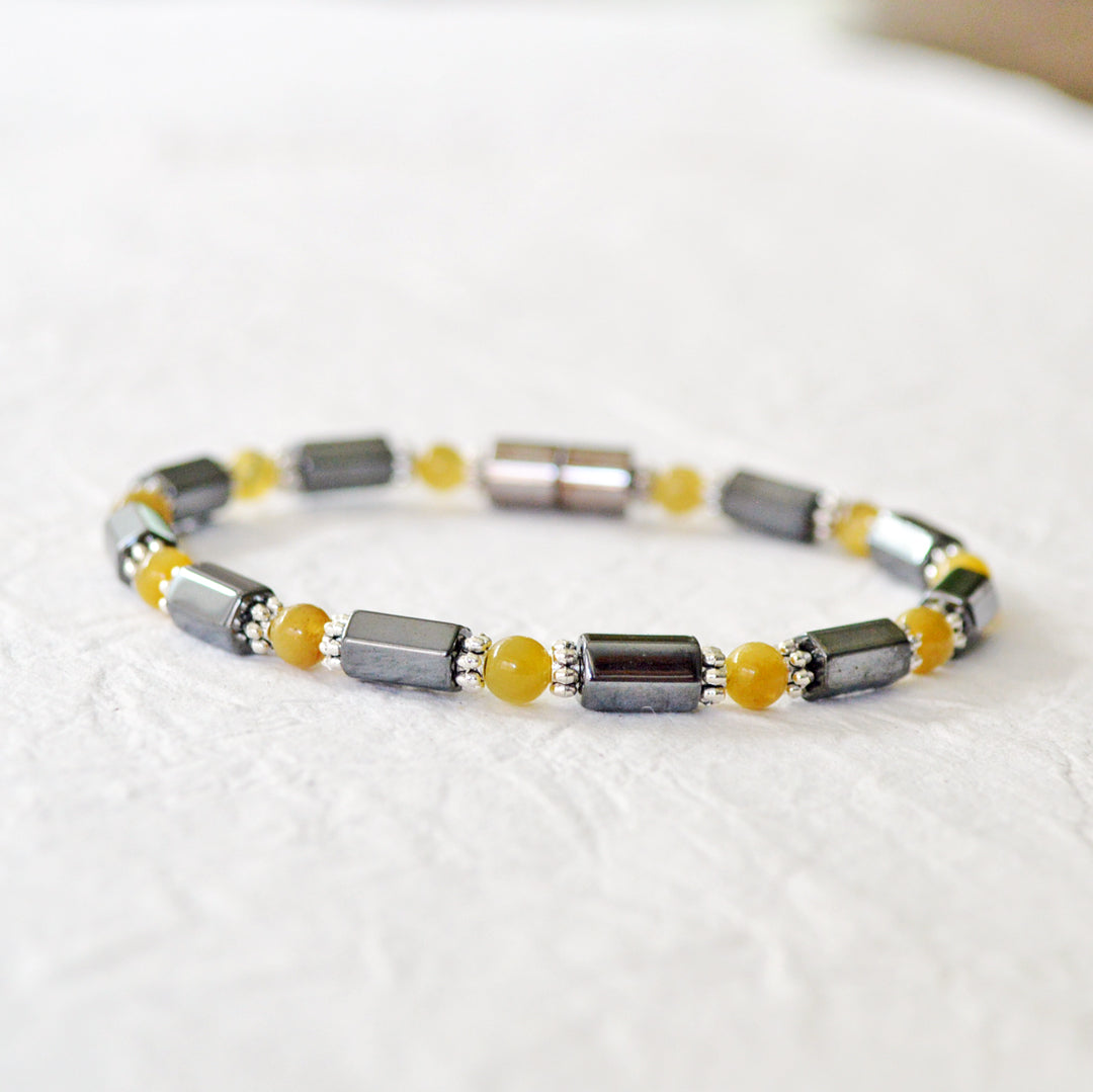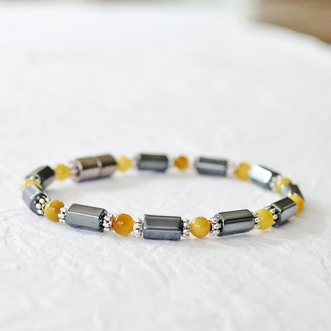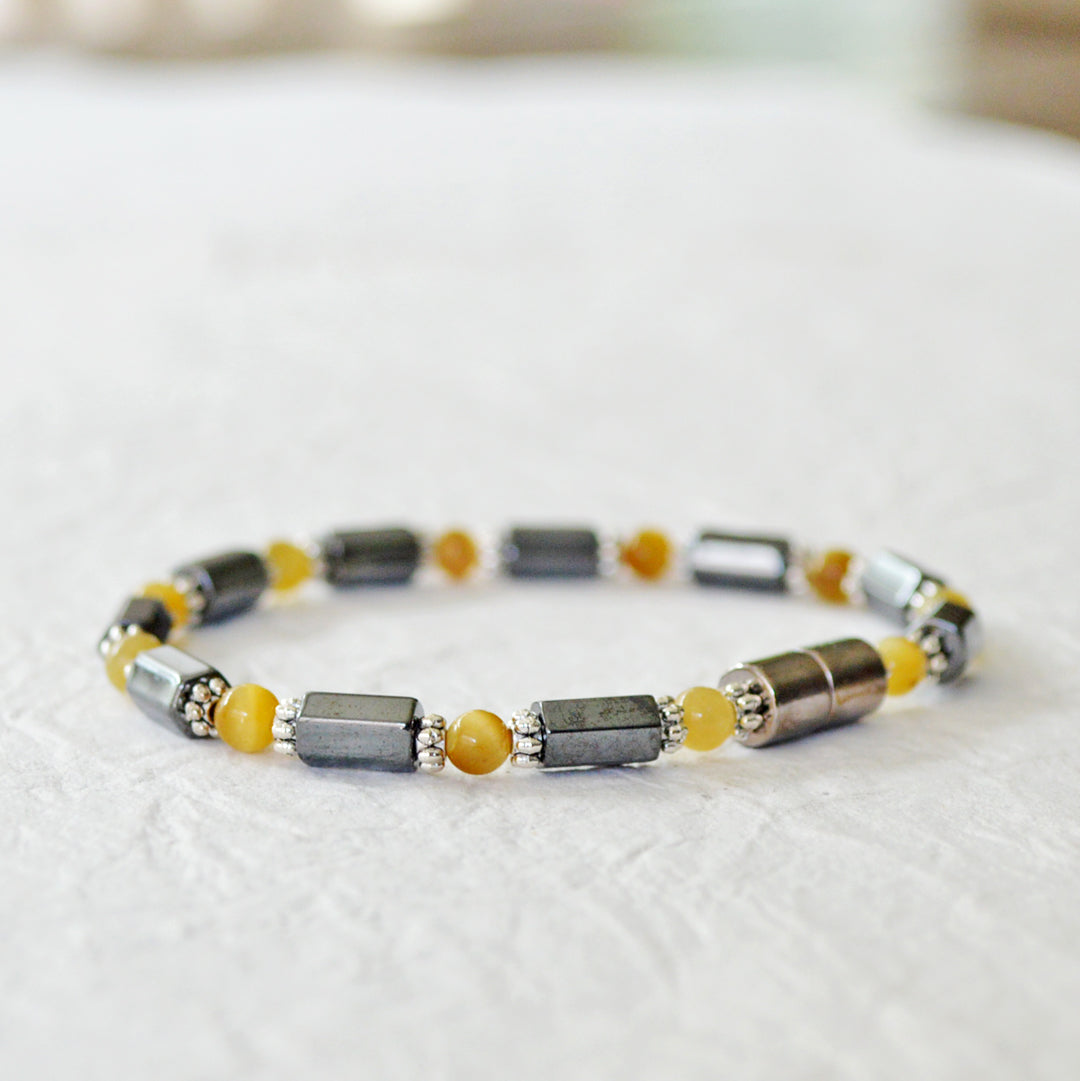 Both style and wellness are combined with this handcrafted Hematite Magnetic Bracelet. Designed with naturally sourced, AAA-grade magnetic beads and golden tiger's eye gemstone beads, this bracelet not only adds to your wardrobe, but also works to ease pain, boost energy, and elevate your overall well-being. Perfect for those seeking a natural and holistic approach to feeling their best, this magnetic bracelet is the ultimate combination of beauty and wellness.
